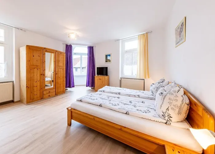 Das Museum Max-Klinger-Haus lässt sich innerhalb von etwa 10 Minuten mit dem Auto vom Hotel aus erreichen. Die Entfernung zwischen dem Stadtzentrum von Freyburg und der Unterkunft beträgt 1 km. Die Lage des Hotels ermöglicht es Ihnen, in einer 17 Gehminuten Entfernung vom Schloss Neuenburg zu sein. Das Pension Unstrutpromenade befindet sich 65 km vom Flughafen Leipzig/Halle und nur 5 Fußminuten von der Bushaltestelle Markt entfernt.